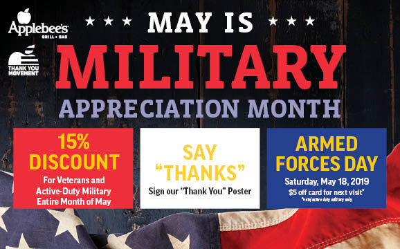 A longtime supporter of the U.S. military, T.L. Cannon Companies and its 61 Applebee's restaurants across upstate New York, Connecticut and Northern Pennsylvania are furthering their efforts during the month of May, as part of the annual Military Appreciation Month celebration.