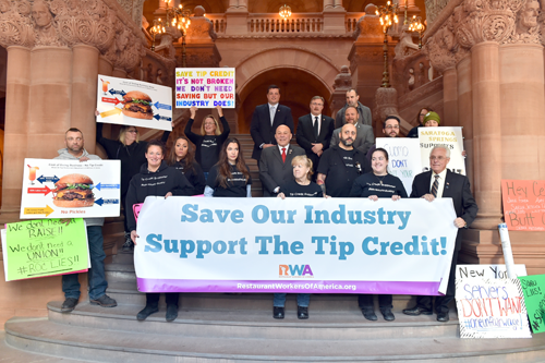 Republican Assemblyman Angelo J. Morinello attended an Albany rally with the Restaurant Workers of American (RWA) and tipped-wage workers from New York state to voice their concerns surrounding the governor's proposal to remove tipped-wages and pay restaurant workers minimum wage.