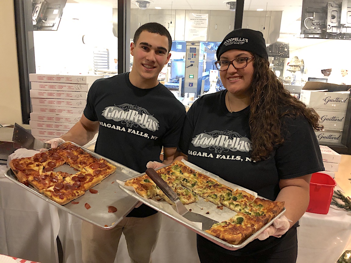 The Festival of Slice debuted Friday as part of the 2018 Jingle Falls downtown Niagara Falls holiday programming. The Cataract City is world-famous for its pizza, and throngs of people flocked to the Niagara Falls Culinary Institute on Old Falls Street to taste $1 slice samples - everything from cheese to old-fashioned, steak and mushroom to steak, chicken finger and onion ring.
