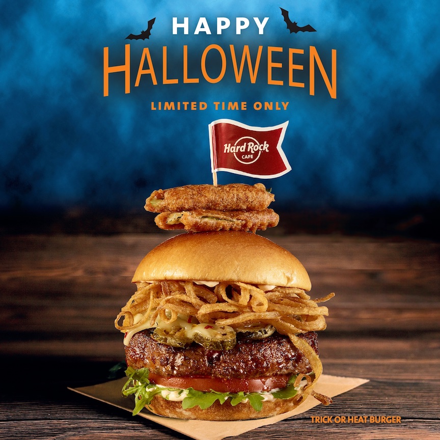 Hard Rock is celebrating All Hallow's Eve with two new bewitching menu items that are to die for: "The Evil Eye Cocktail" and the "Trick or Heat Burger."