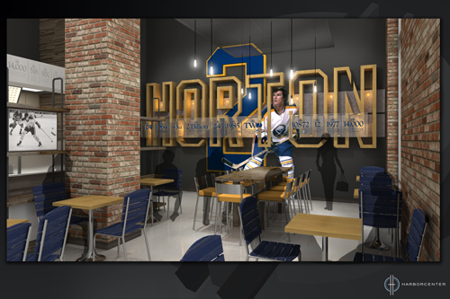 HARBORCENTER President John Koelmel and Tim Hortons President and CEO Marc Caira have announced a one-of-a-kind Tim Hortons Cafe & Bake Shop will open at HARBORCENTER this fall.
