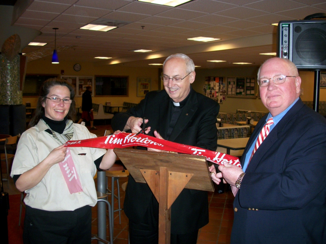 A Tim Hortons Café & Bake Shop was officially welcomed onto Monteagle Ridge Wednesday afternoon. Niagara University held a ribbon-cutting ceremony on March 30 to celebrate the opening of the Gallagher Center's newest - and quite possibly, its most popular - food service vendor.