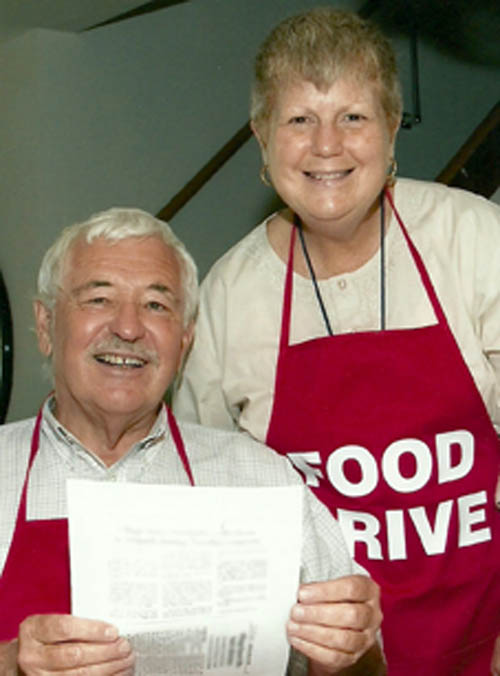 Sister Beth Brosmer of Heart & Soul, and Don Luce of Community Missions, both of Niagara Falls, review the latest reports from the food cash collection drives, ongoing at Artpark entrances on Artpark Tuesdays.