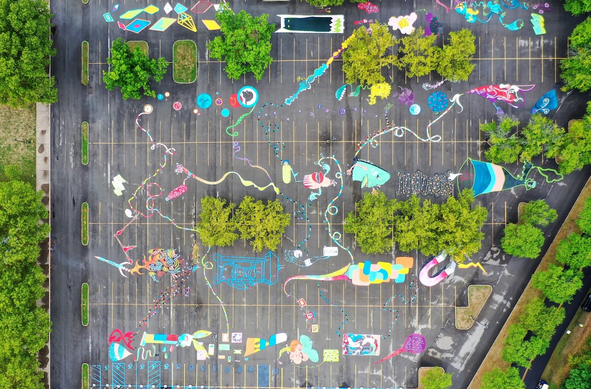 Artpark & Company used its unusually (and pandemic-related) slower spring months to plot out a new mural project for the main parking lot on South Fourth Street in Lewiston. That grand canvas was recently completed and can be seen in these pictures from K&D Action Photo & Aerial Imaging.