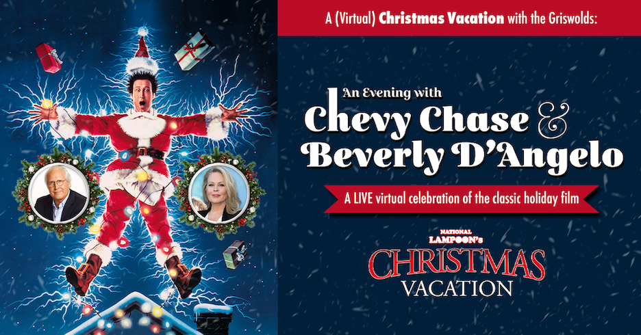 Light up your holidays and join Christmas' favorite couple, Ellen and Clark Griswold, for a virtual salute to the holiday classic "National Lampoon's Christmas Vacation." Chevy Chase (Clark) and Beverly D'Angelo (Ellen) will lead audiences through this live Artpark event as they share fan-favorite clips from the movie, reveal their favorite memories from the making of the "Vacation" franchise, and answer fan questions in a live audience Q&A at 8 p.m. Saturday, Nov. 28.
