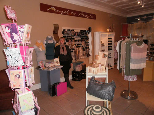Angel to Apple Clothing Boutique recently celebrated its fifth anniversary. As part of the festivities, two contests were held: patrons chose the most fashionable store shopper, and Rachel Goodman won the "wear the most stuff" contest, as she was covered with more than 60 items purchased in the boutique.