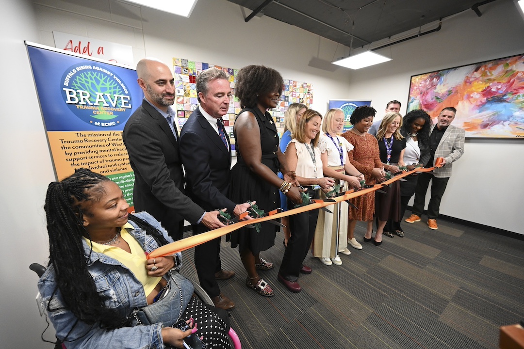 ECMC celebrated the opening of its new satellite trauma recovery center, that is affiliated with the institution's BRAVE (Buffalo rising against violence) initiative, which is a hospital-based violence intervention trauma recovery effort that serves individuals who have experienced acute victimization and violence.