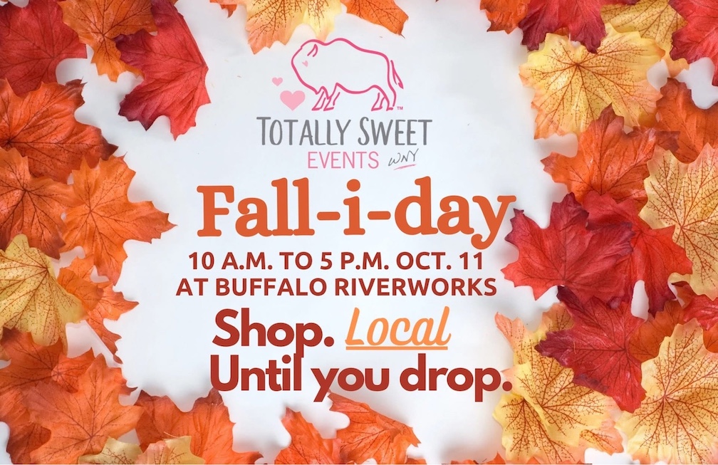 Fall is in the air and that means it's time to shop until you drop with your favorite local vendors and artisans at the annual Totally Sweet Buffalo "Falliday" event happening at Buffalo RiverWorks from 10 a.m. to 5 p.m. Saturday, Oct. 11. Come celebrate fall with amazing, unique items made by local artisans. The event will feature 100 vendors who will be selling fall-themed merchandise and, of course, all things Buffalo and football!