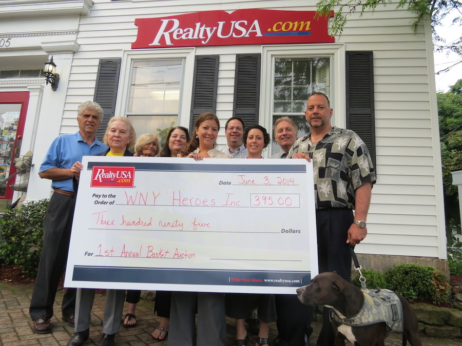 Members of the Lewiston branch of RealtyUSA presented a $395 check Tuesday to Chris Kreiger, president and co-founder of WNY Heroes Inc.