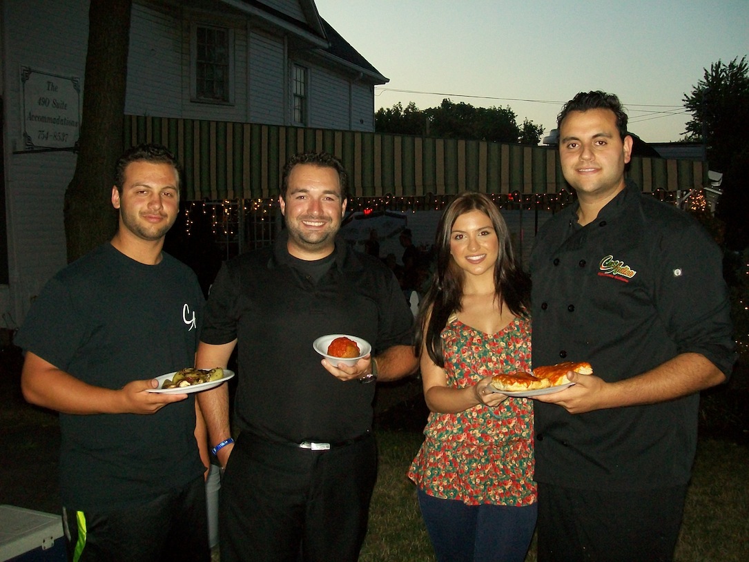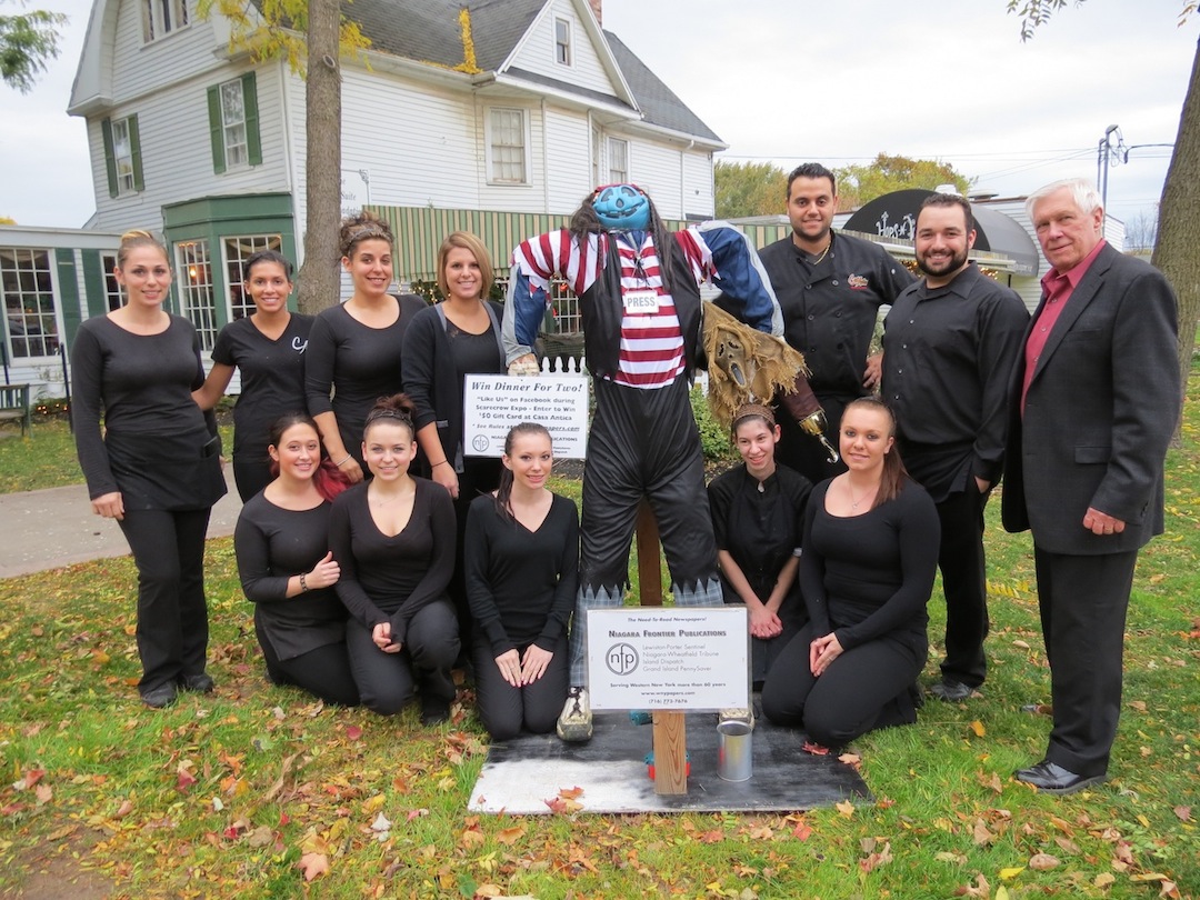 Niagara Frontier Publications' Skip Mazenauer, publisher of the Sentinel, poses with Casa Antica manager Robert Herman, chef Charlie Soldano and the "Casa Girls" outside of the Italian restaurant.