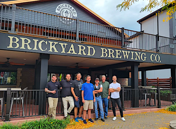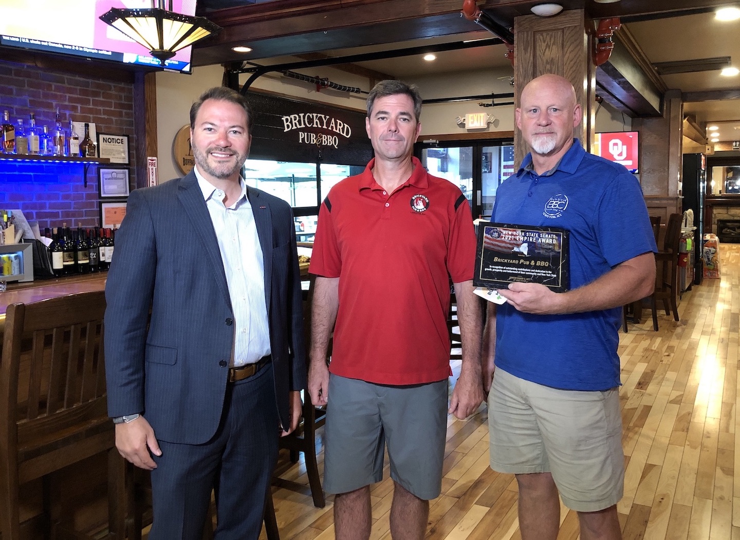 New York State Senate Republican Leader Rob Ortt (far left) presented his "Small Business of the Month" award to The Brickyard Pub & BBQ and owners Ken Bryan (center) and Eric Matthews.