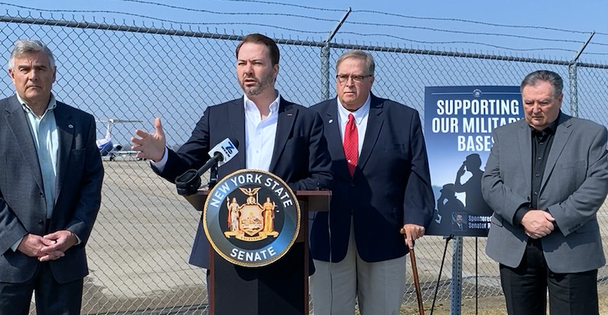 New York State Senate Republican Leader Rob Ortt on Friday stood at the Niagara Falls Airfield with local leaders to call on Gov. Kathy Hochul and legislative leaders to "restore vital funding" for military base retention in this year's state budget.
