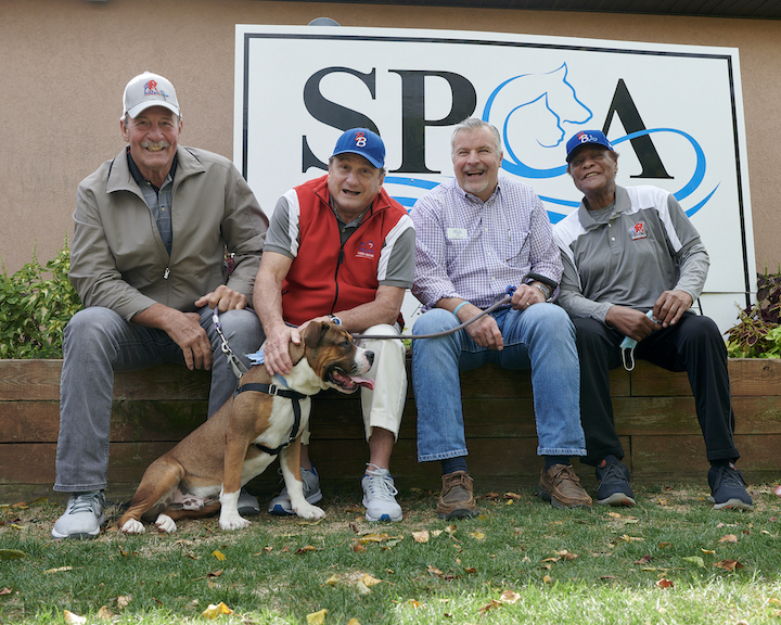 On Thursday, Buffalo Bills alumni Booker Edgerson, Ken Jones and Lou Piccone visited the Niagara County SPCA to sponsor the cage of a shelter dog on behalf of Cure the Blue, a nonprofit organization that raises awareness of prostate cancer.