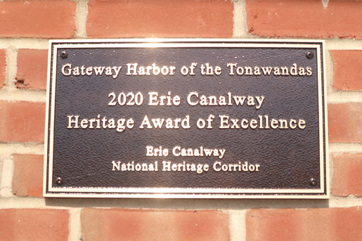 On Tuesday, local officials from North Tonawanda and Tonawanda, along with representatives from the Erie Canalway National Heritage Corridor, came together to unveil a bronze plaque in recognition of the Gateway Harbor of the Tonawandas winning the 2020 Erie Canalway Heritage Award of Excellence.