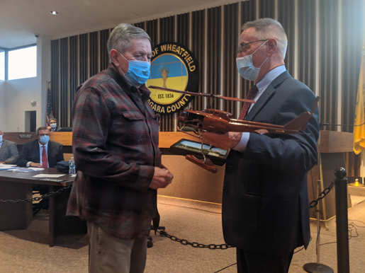 It was an eventful session at Monday's Town Board meeting in the Town of Wheatfield. Tom Kontak, a member of a local veterans group, was recognized for his efforts in the restoration of a helicopter located at the Town Hall, which now stands as a monument for veterans.