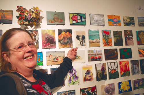 The Carnegie Art Center hosted a big night this past Thursday for its annual "Art off the Wall" event. The largest wall was covered with small 5-by-7-inch pieces of art, while the space also contained a room dedicated to 12-by-12-inch canvases and even tinted glass that were bid on silently by artists' fans.