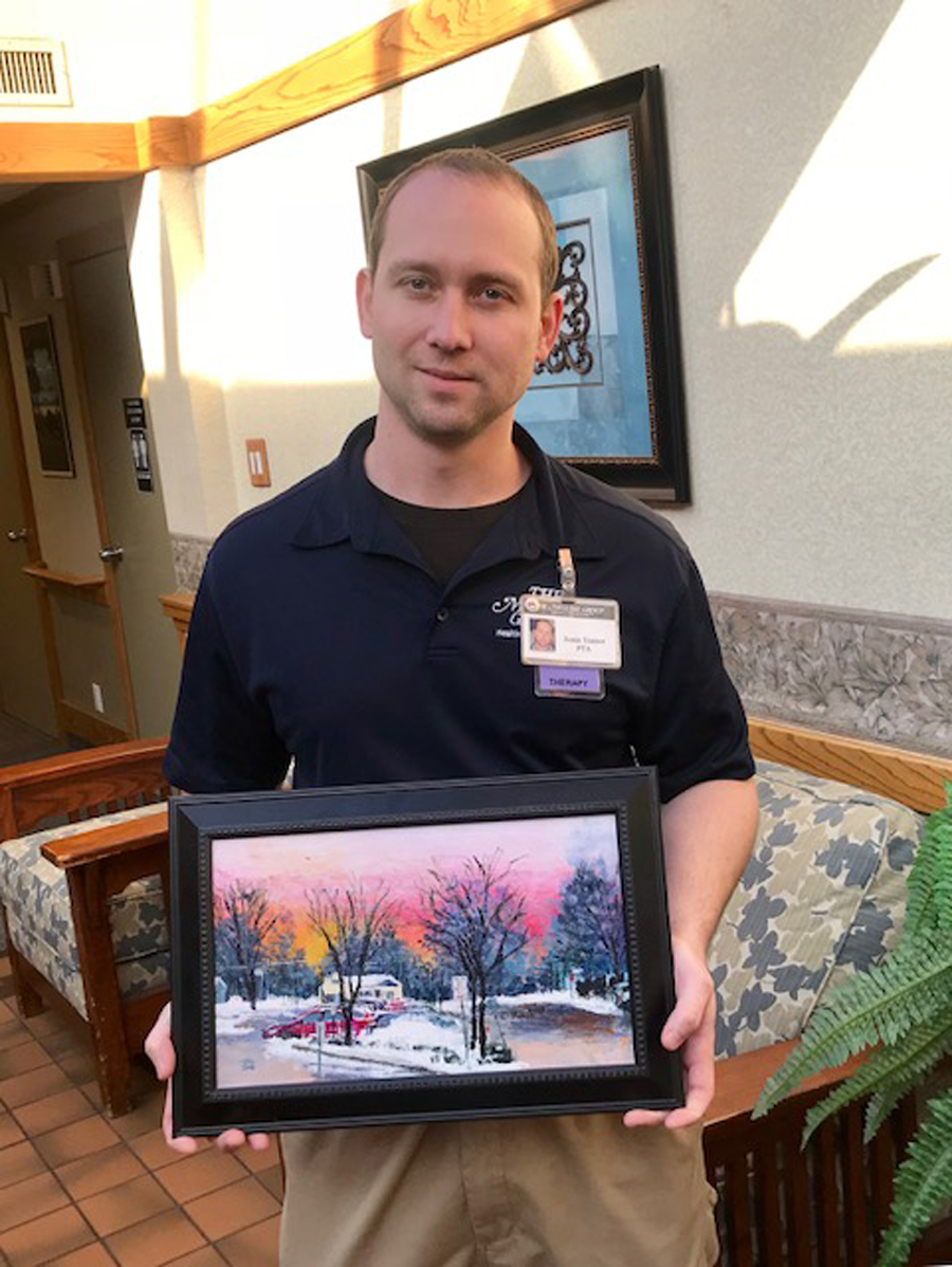 Justin Trainor, an artist and physical therapy assistant at The McGuire Group's Northgate Health Care Facility, will be the featured artist at an art show titled Enter the Artist, running from Feb. 25 through March 11 at the facility.
