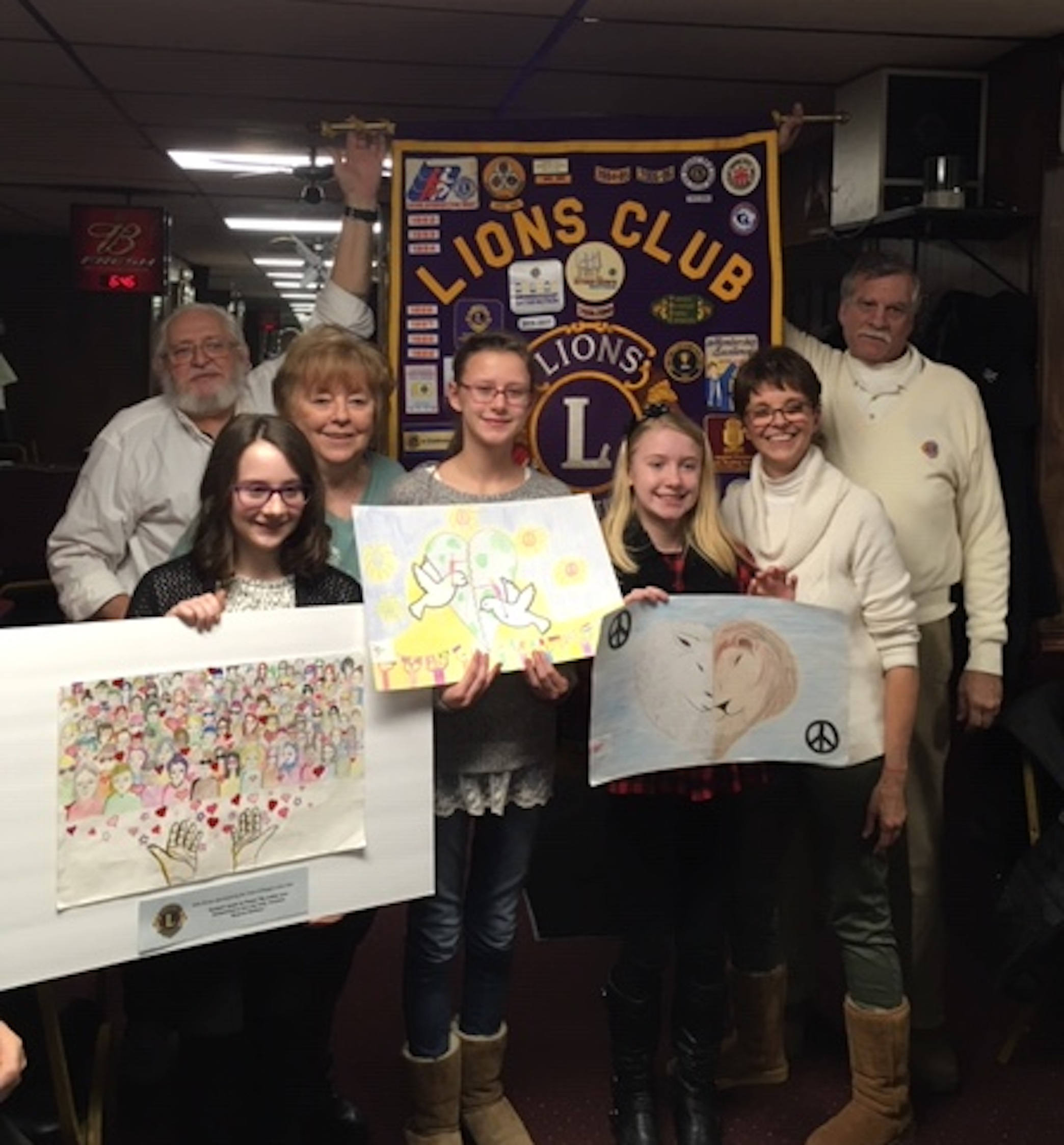 The Town of Niagara Lions Club presented the winners of the annual peace poster contest with their prizes and certificates. All three winners attend Holy Ghost Lutheran School.