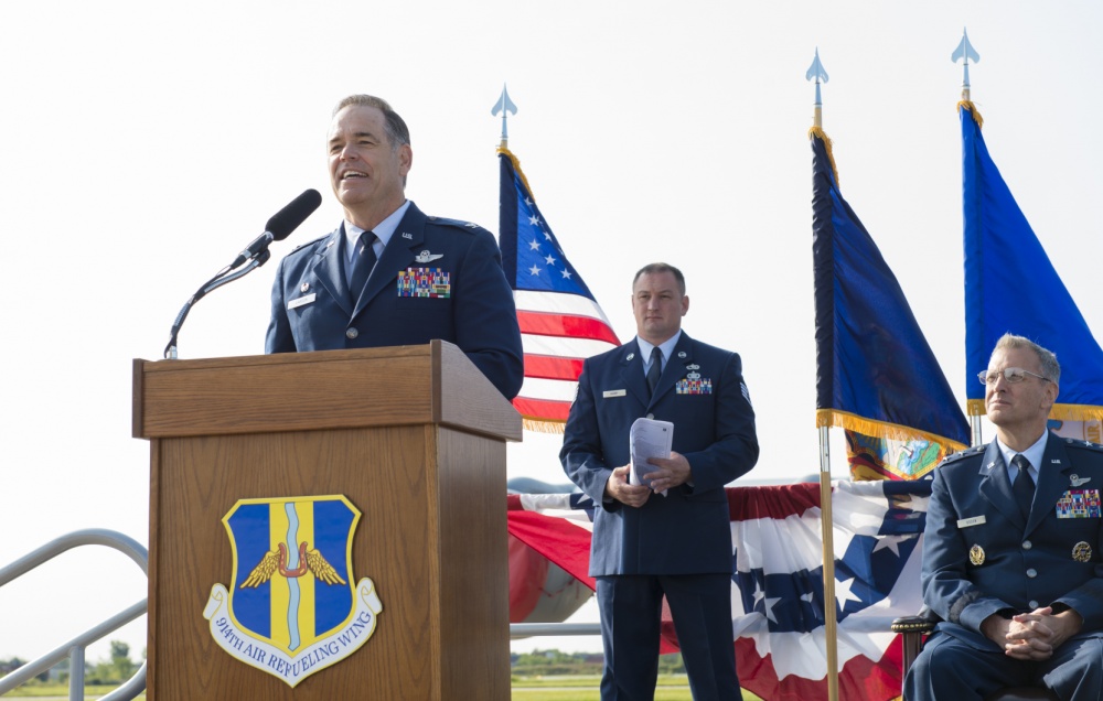 Col. Mark S. Larson took command of the 914th Air Refueling Wing from Col. Brian S. Bowman on Sunday during a change of command ceremony at the Niagara Falls air reserve station.