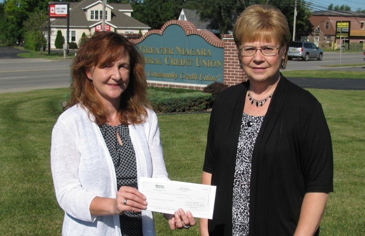 Greater Niagara Federal Credit Union President and CEO Carolyn DuBois, right, presented a check for $1,000 to Laura Kelemen, executive director of the Child Advocacy Center of Niagara.