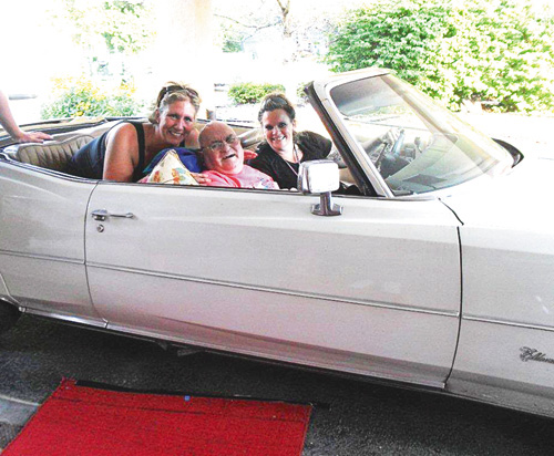 Northgate resident Tom Burrock, a former mechanic from Wheatfield, was all smiles as he cruised around town in a 1974 Eldorado that was on display at the facility's recent fifth annual car show.