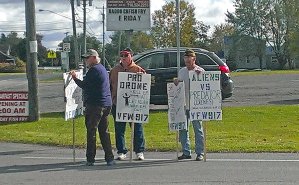 A week after an anti-drone protest outside the Niagara Falls Air Reserve Base, a group of veterans gathered at the site for a different purpose: to show their support of the United States drone operations.