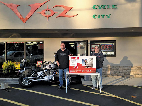 Every year for the past four years, Terry and Carol Vosburgh (pictured) from VOZ Cycle City, 3287 Niagara Falls Blvd. in Wheatfield, purchase a flat screen TV to raffle with the proceeds used to purchase bicycles and toys for Western New York Heroes.