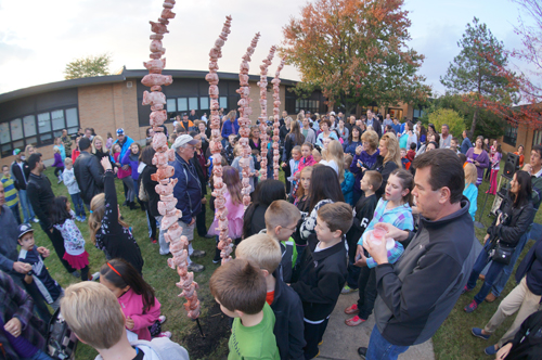 Proud fourth-graders at Errick Road Elementary recently unveiled their first outdoor sculpture titled "Vertebrate Spines."