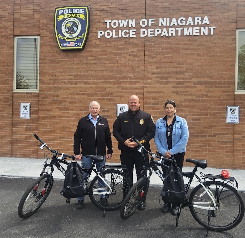 Fashion Outlets of Niagara Falls USA was pleased to donate a pair of police tactical bicycles to the Town of Niagara Police Department on April 30. The police department intends to use the bikes while patrolling Veterans Memorial Community Park, as well as various outdoor activities throughout the Town of Niagara.