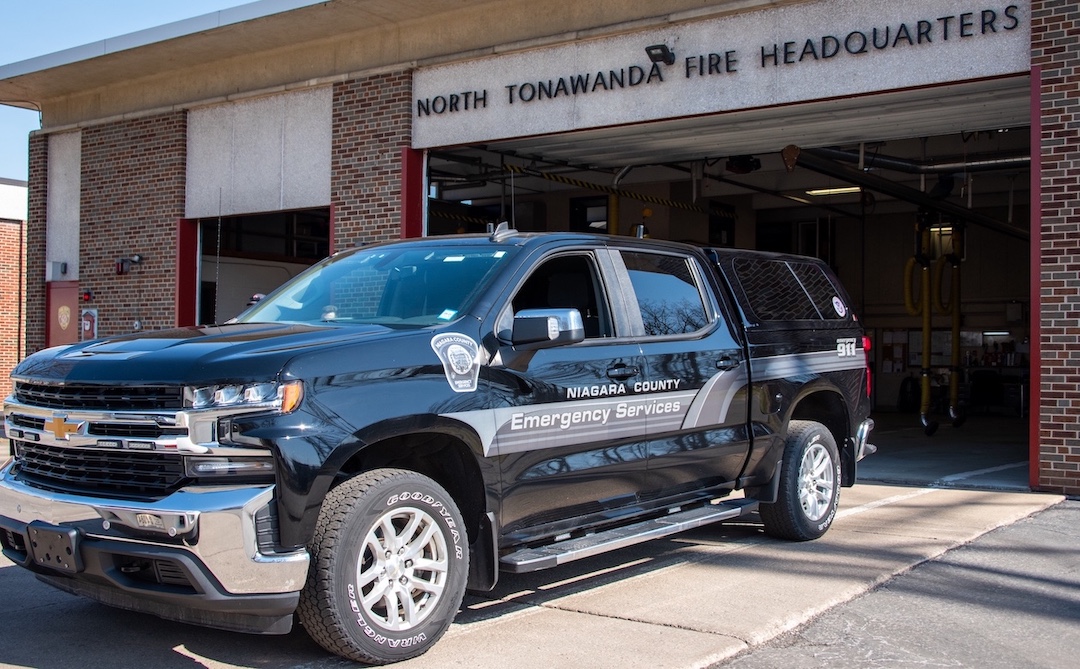 Niagara County legislators Randy Bradt and Jesse Gooch, on Tuesday, handed over the keys to a 2020 Chevy Silverado, previously used by county Emergency Services, to North Tonawanda Mayor Austin Tylec for use by the North Tonawanda Fire Department.