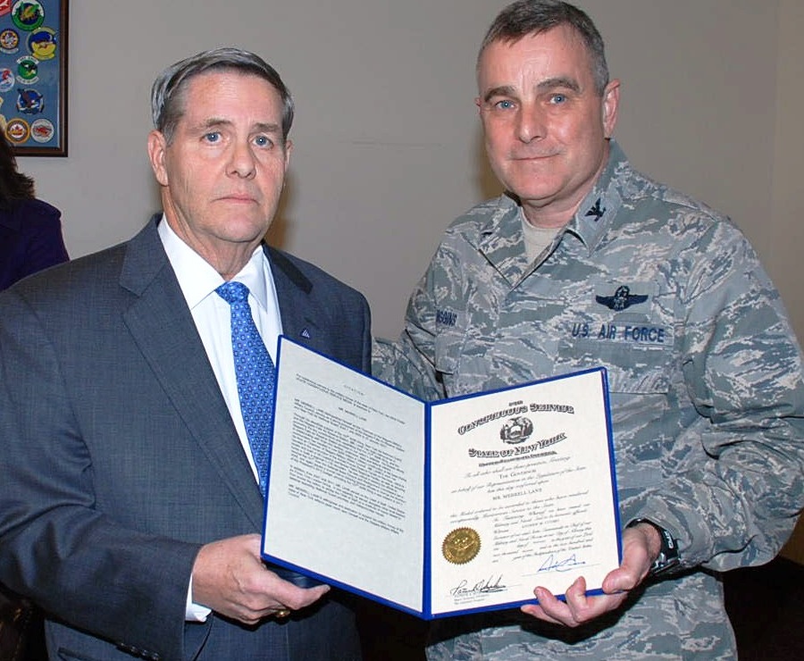 Merrell Lane, the chairman of the Niagara Military Affairs Council since 2005, has been awarded the New York State Conspicuous Service Medal for his service to the New York Air National Guard and the Niagara Falls Air Reserve Station.