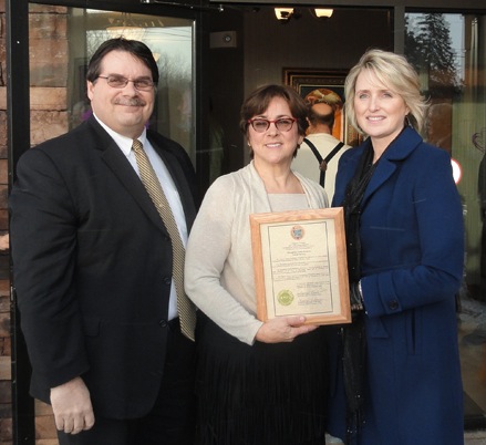 Hon. Michael Tucker, mayor of Lockport and acting chairman of the NCIDA, and Niagara County Legislator Kathryn Vance present a proclamation from the Niagara County Legislature to Dr. Kathy Casacci (center) to celebrate the grand opening on Feb. 1 of Wheatfield Family Dentistry.
