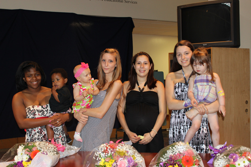 Four young women celebrated a milestone recently at the Niagara Career and Technical Education Center. All are teenage mothers and have been taking their classes at the Alternative Parenting Program taught by Peg Behnke.