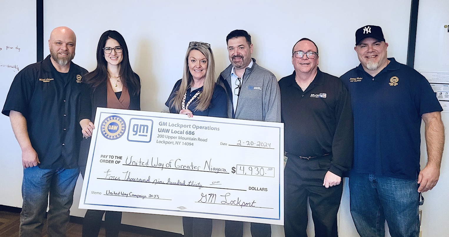 Through employee raffles at General Motors Lockport Operations plant, members of United Auto Workers Local 686 have raised $4,930 in support of United Way of Greater Niagara.