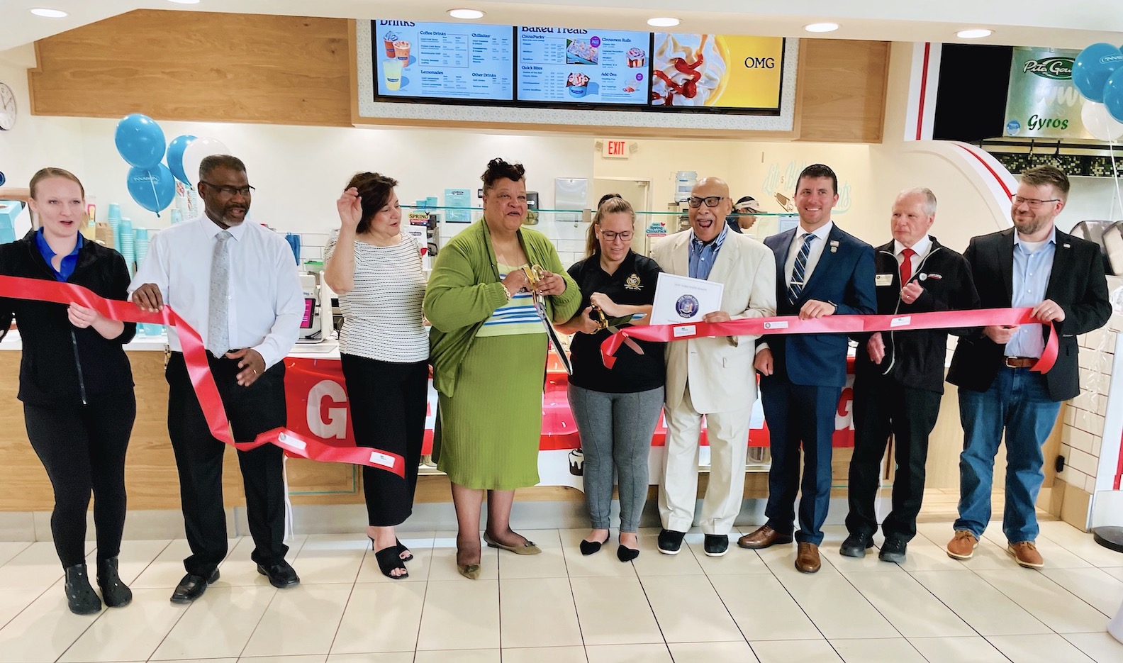 The Upward Niagara Chamber of Commerce and Fashion Outlets of Niagara Falls USA teamed Friday to host a ribbon-cutting ceremony welcoming the newest member of the mall's food court: Cinnabon.