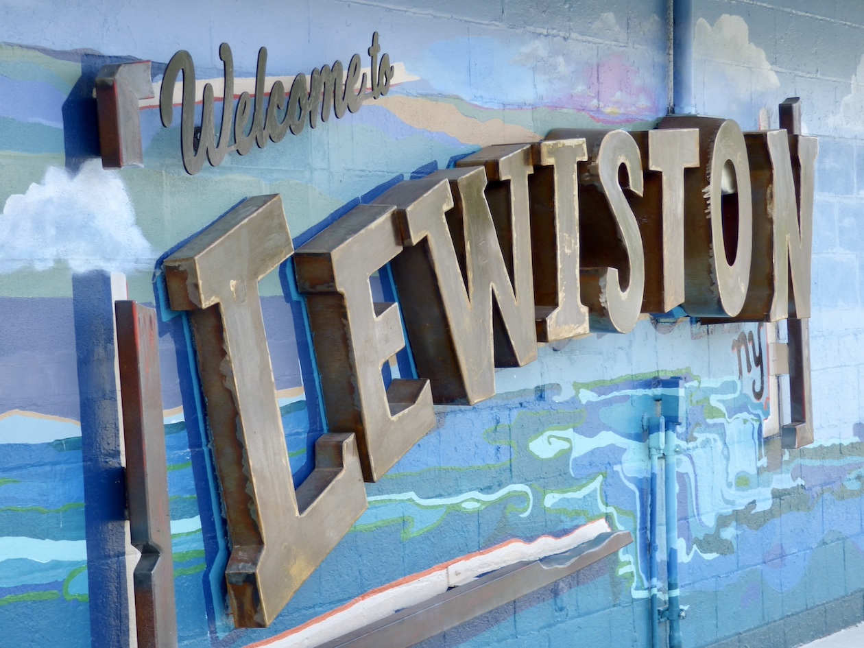 Final work on "The Lewiston Mural at Academy Park" has been completed, bringing the large summer art project to an exciting conclusion. Lewiston artists Maureen Kellick and Dan Buttery collaborated on the unique mural project that encompasses the building at the park's northeast corner, creating a dynamic visual welcome at the gateway to the village.