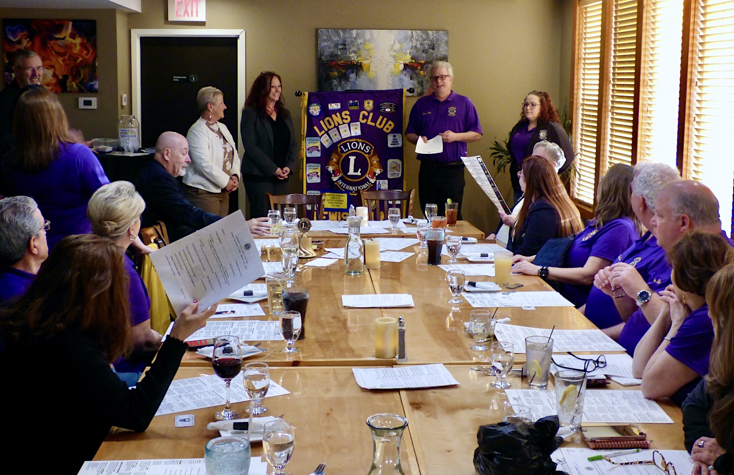 The Lewiston Community Lions recognized two significant donations to its "Village of Trees" initiative at a special meeting Tuesday at the Griffon Gastropub. Carol Perry, president of the New York State Lions Bermuda Foundation, represented a $4,400 matching grant; while Niagara County Legislature Chairwoman Becky Wydysh and Legislator Irene Myers were on hand to recognize $2,000 in awarded funding.