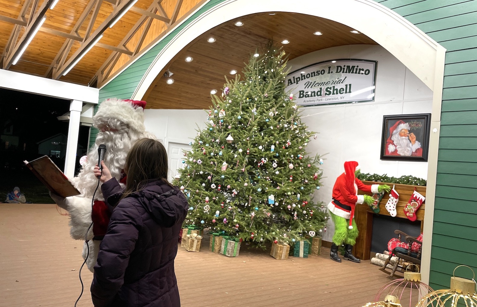 Village Recreation Department Director Brendan McDermott served as emcee Friday night at the tree-lighting ceremony ringing in Lewiston Christmas Walk weekend.