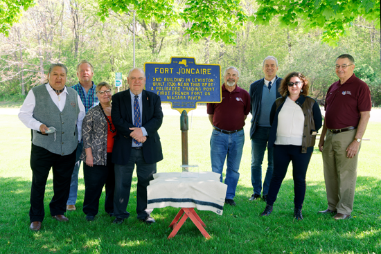 In 2020, seven organizations joined together to commemorate the 300th anniversary of the founding of Le Magazin Royal, a French trading post located where Artpark stands today. Part of that commemoration involved the creation of a limited number of custom-designed medallions. Production was delayed due to the pandemic, but each organization recently received a medallion at the site of the early 18th century trading post.