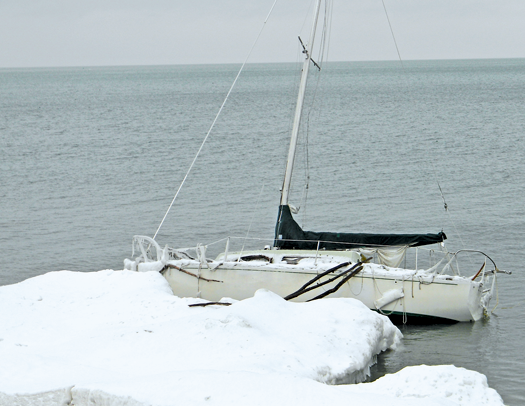 Those hiking the meadow beach area at Fort Niagara State Park last week saw something strange on the shore. Amidst the ice floes, a small, abandoned sailboat was seen bobbling on the eastern end with the waves.