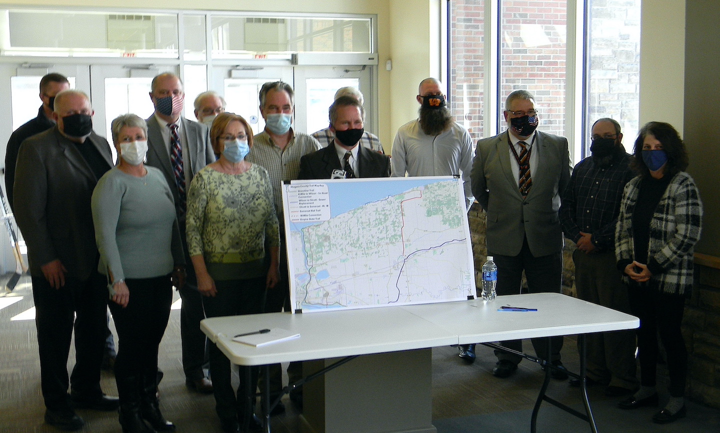 Niagara County municipal leaders laid the foundation Friday for what is envisioned to be a 35-mile-long Niagara County bike trail system connecting the Village of Lewiston on the south to lake communities on the north and Lockport on the east.