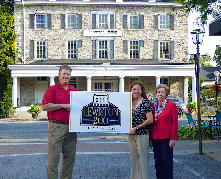 Town of Lewiston Supervisor Steve Broderick, Village of Lewiston Mayor Anne Welch and Lewiston Bicentennial Chairperson Leandra Collesano unveiled the official Lewiston Bicentennial Logo at the historic Frontier House on Friday.