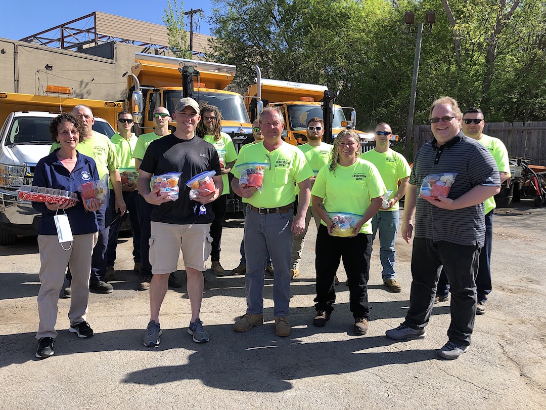 The Kiwanis Club of Lewiston donated more than a dozen food packs to the village's Department of Public Works on Friday. Each kit included a can of soup or ravioli, a reusable bowl, oatmeal, pudding, water and, of course, peaches - all courtesy of Kiwanian Dean Beltrano. In addition, Kiwanian Jan Mathews dropped off a tray of cookies.