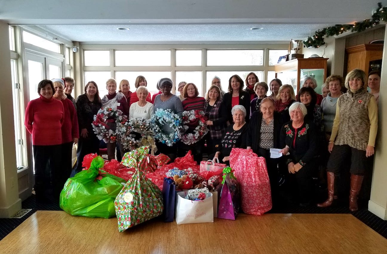 The Lewiston Garden Club celebrated its Christmas luncheon Tuesday at the Youngstown Yacht Club. The group is shown with gifts and food baskets collected for four families from Community Missions in Niagara Falls.