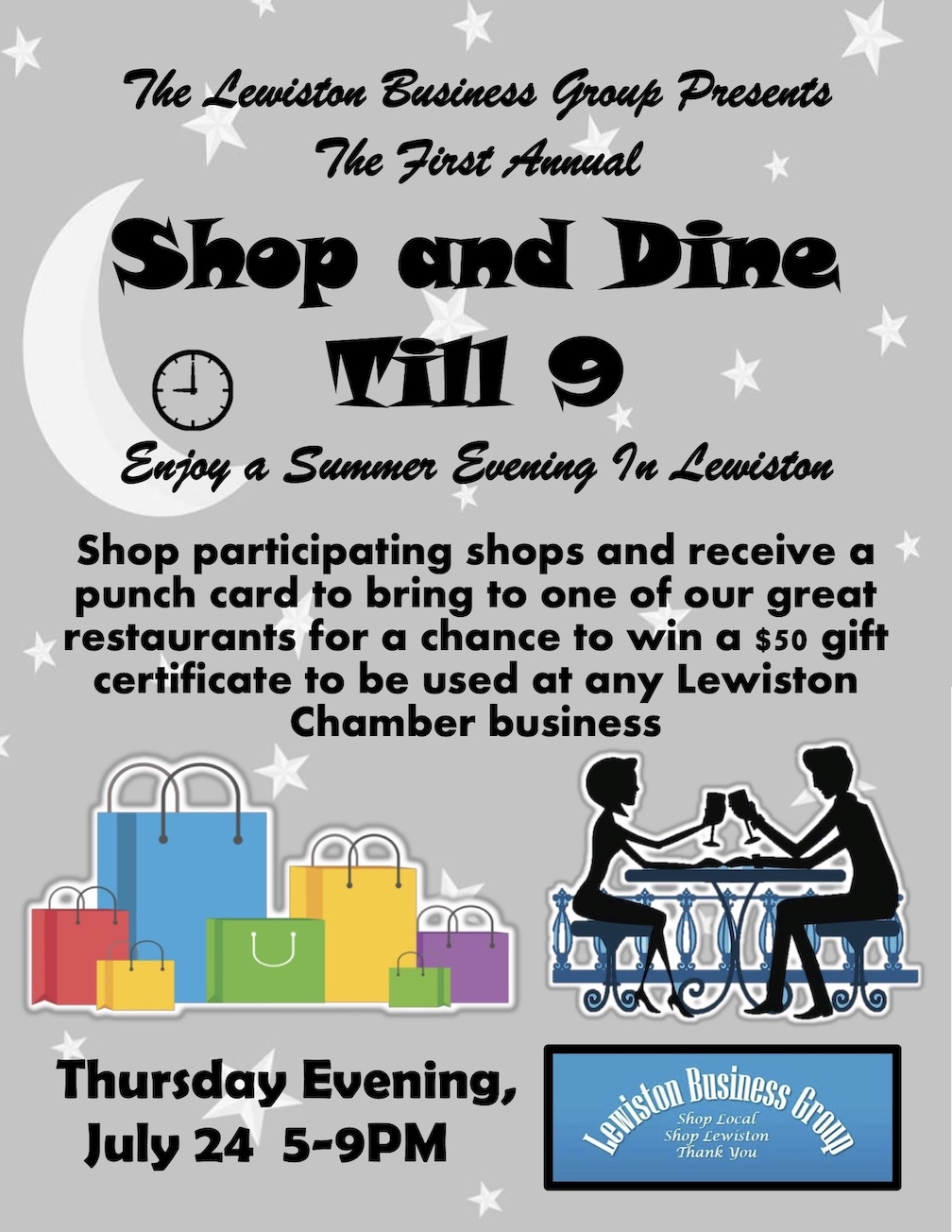 The Lewiston Business Group will host the first "Shop and Dine Till 9" event from 5-9 p.m. Thursday, July 24.