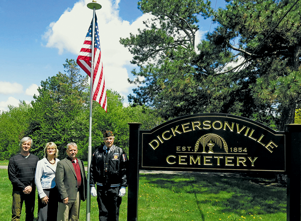 On Thursday, May 14, the Town of Lewiston installed a new flagpole at the Dickersonville Cemetery, located on the north side of Ridge Road - just west of Dickersonville Road.