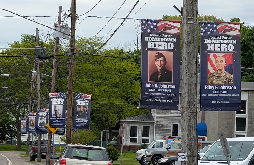 Town of Porter Highway crews were busy this week as installations continue for the "Hometown Heroes" banner program - now in its third year. More than 140 banners are in the process of being installed on utility poles throughout the Village of Youngstown and hamlet of Ransomville.