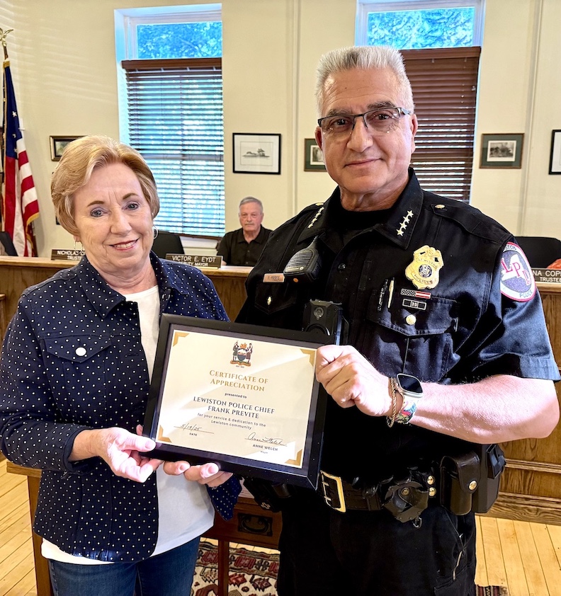 The Village of Lewiston recognized outgoing Lewiston Police Department Chief Frank Previte and thanked him for three decades of keeping the public safe.
