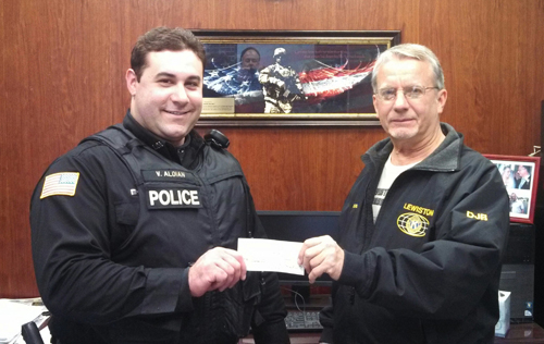 Officer Vanik Aloian of the Lewiston Police Coat of Arms Benevolent Association recently visited with Town of Lewiston Supervisor Dennis Brochey.