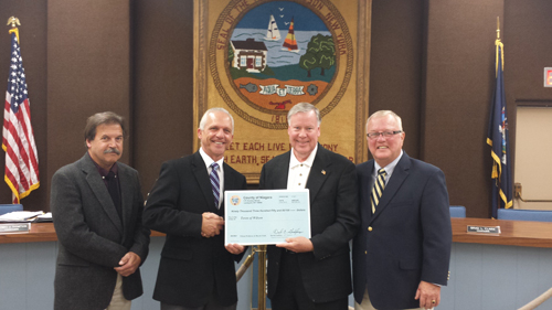 At the regular meeting of the Wilson Town Board on Wednesday, Niagara County Legislator David Godfrey presented two checks to the board from the Niagara River Greenway Commission.